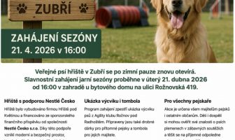 Zubří, 21. dubna 2026 – Veřejné psí hřiště v Zubří vstupuje do nové sezóny. Slavnostní…