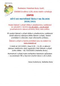 Zápisy do mateřských škol v Zubří 0 Od Aleš Měrka dne 17.4.2020 Sport, Vše MŠ Sídliště MŠ Duha Staré Zubří Sdílet. Twitter Facebook Google+ Pinterest LinkedIn Tumblr Email