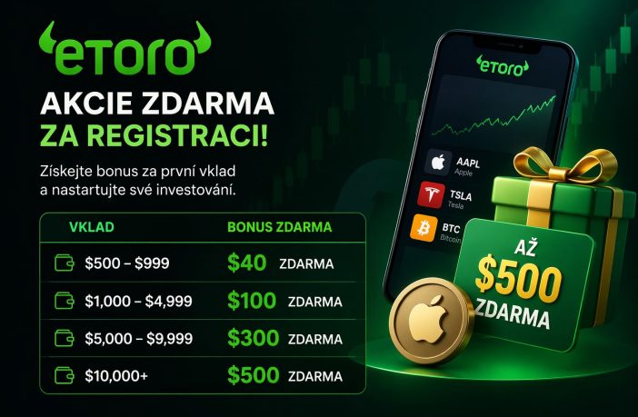 Investování už dávno není jen pro profesionály z Wall Street. Díky moderním platformám se dnes může zapojit prakticky kdokoliv – a jednou z nejznámějších je právě eToro. Ta navíc často nabízí atraktivní vstupní bonusy, díky kterým můžete získat akcie zdarma jen za registraci a první vklad.