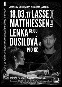 Hudební událost jara Dvojkoncert hudebních osobností, který jinde neuvidíte! Lenka Dusilová – sólo Lasse Matthiessen & band (Dánsko) Vstupné: 190 Kč Rezervace: kancelář Klubu Zubří, Tel: 571 659 447, 602 483 785 kultura@mesto-zubri.cz Lenka Dusilová - Sólo Lenka se stala ikonou odvážného, novátorského popu, avšak neztrácí většinové publikum, jež si za léta svého působení vybudovala. V samostatných sólových vystoupeních