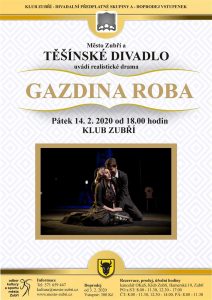 Těšínské divadlo , GAZDINA ROBA Autor, režie: Gabriela Preissová, Petr Kracik Hrají: Petra Sklářová a Robert Urban nebo Petr Sutorý a další Jedno z největších českých divadelních dramat pojednává o vášni, snech a touze, které není možné naplnit. Baladický příběh lásky chudé krajčířky Evy a bohatého statkáře Mánka je zasazen do prostředí slovácké vesnice, která