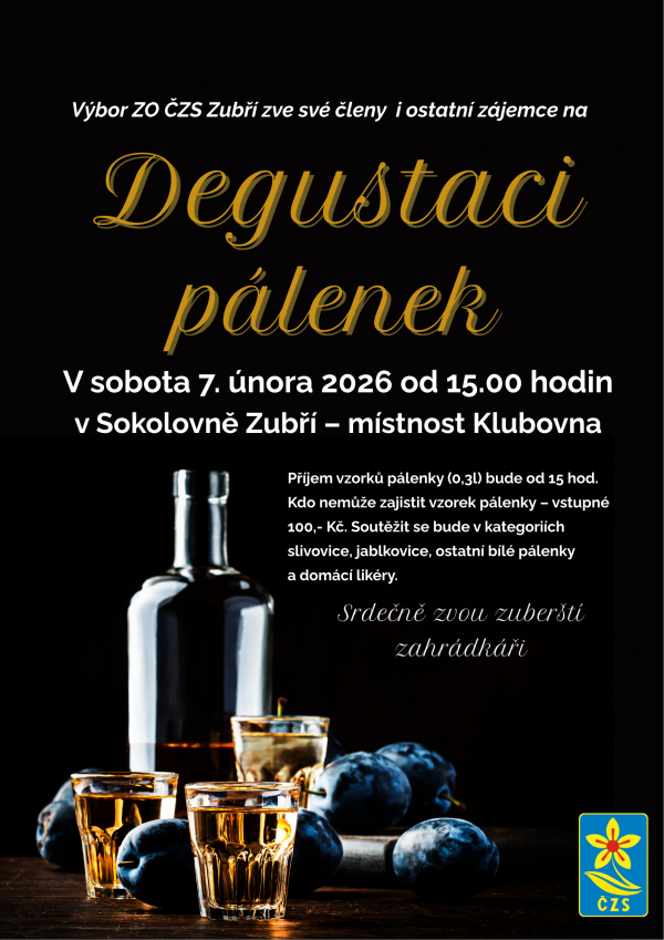 Výbor ZO ČZS Zubří zve své členy i širokou veřejnost na degustaci pálenek a domácích likérů.