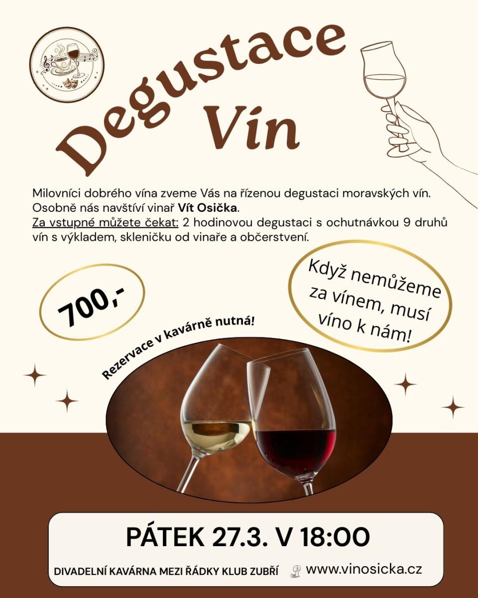 Milovníci dobrého vína zveme Vás na řízenou degustaci moravských vín. Osobně nás navštíví vinař Vít Osička (https://www.vinosicka.cz/)