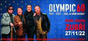 Výroční koncert nestárnoucí legendy české hudební scény, která oslaví 60 let také v Zubří. Olympic zahraje své největší hity., 90 min, Hrají: Petr Janda – kytara, zpěv (od roku 1963) Milan Broum – baskytara, zpěv (od roku 1975) Martin Vajgl – bicí, zpěv (od roku 2013) Pavel Březina – klávesy (od roku 2020),