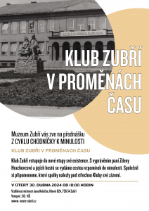 Klubu Zubří, který vstupuje do nové etapy své existence. Připomeneme si jeho začátky a představíme vám jeho proměnu v průběhu času. Zdena Hrachovcová a její hosté se sejdou na besedě s výstižným názvem „Klub v proměnách času“, aby společně zavzpomínali na minulost.