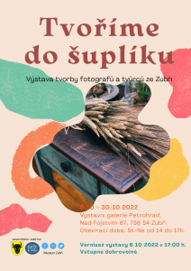 Na podzim ve dnech 6. – 30. října 2022 proběhne ve Výstavní galerii Petrohrad výstava s názvem Tvoříme do šuplíku. Návštěvníci se mohou seznámit s fotografickou tvorbou a tvůrci, kteří zatím tvoří jenom pro sebe, pro rodinu a kamarády, pro radost, zkrátka do šuplíku.Objevte s námi díla a šikovnost zatím neznámých tvůrců ze Zubří. Výstava, na kterou je široká veřejnost zvána, bude zahájena slavnostní vernisáží ve čtvrtek 6. října 2022 od 17.00 hodin.