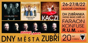 Právě před 10ti lety jsme v rámci historicky druhého ročníku dne města představili první „městskou“ desetiletku, a to venkovní výstavu, mimořádným vydáním Zuberských novin, obřím dortem, ale také oslavami, jejichž hlavními hvězdami byla kapela Hamleti. Od té doby už se stalo dobrým zvykem, že na přelomu srpna a září naše Klidové centrum malinko zneklidní a promění se v každoroční oslavu společenského a kulturního života v Zubří. Na té se každoročně podílí řada místních spolků a organizací, na pódiu se vystřídají místní umělci s hosty…