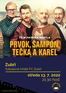 Komedie / Drama, Česko, 2021 118 min Režie, scénář: Patrik Hartl Hrají: Martin Pechlát, David Švehlík, Hynek Čermák, Martin Hofmann, Daniela Kolářová, Kristýna Boková, Jana Kolesárová, Petra Polnišová a další vstupné dobrovolné V příběhu Prvoka, Šampóna, Tečky a Karla si čtyři kamarádi ve středním věku přiznají, že nežijí tak, jak si představovali. A rozhodnou se vyřešit svou krizi provokativní hrou a plněním odvážných úkolů. Jak čtyřicátník zjistí, jestli je opravdovej chlap? Jak zabrání korozi svých ideálů, rozplynutí snů a scvrkávání varlat?…