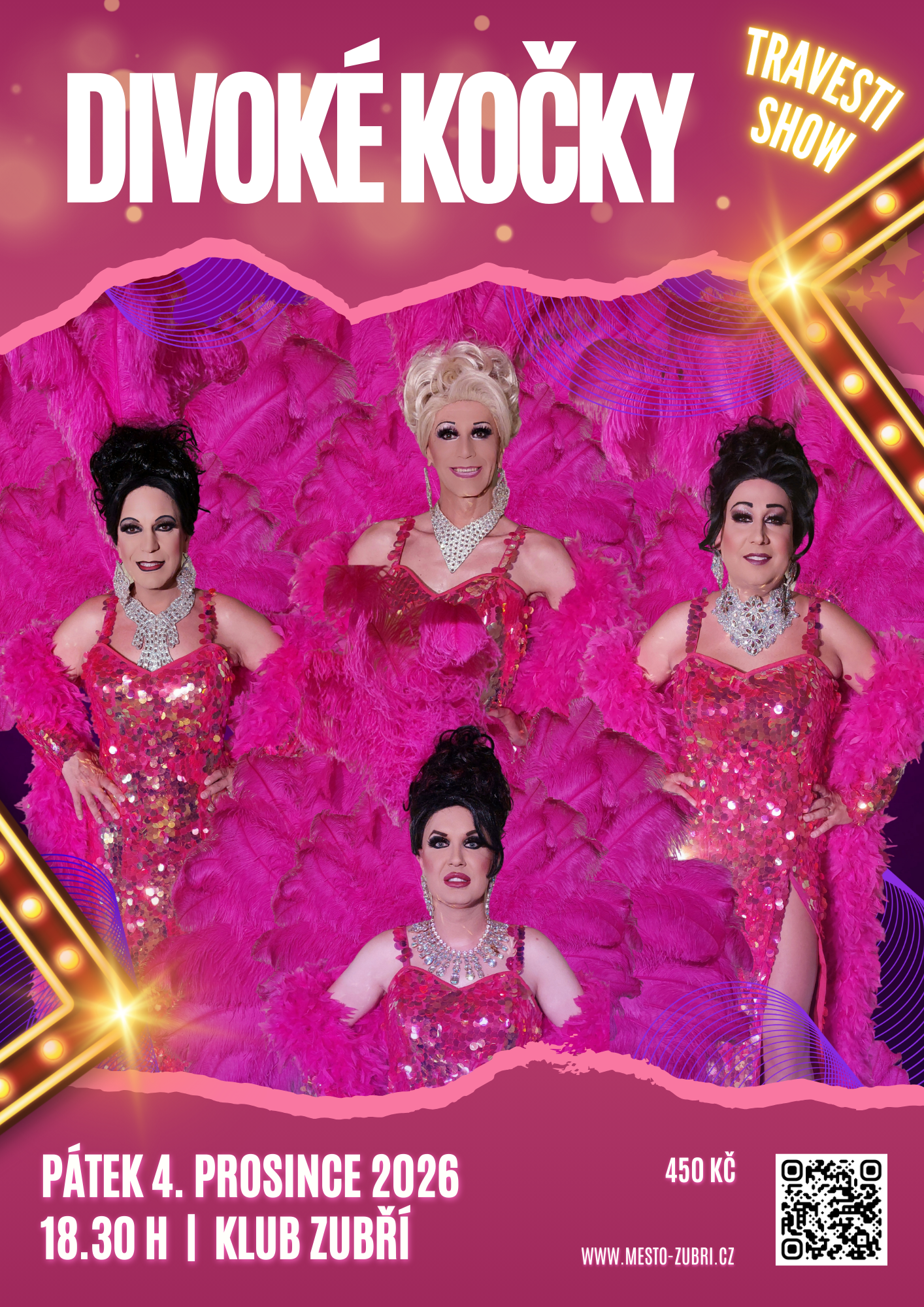 Travesti Divoké kočky z Ostravy přijíždí se svým celovečerním programem v rámci svého turné poprvé do Zubří. Celovečerní zábavný program je plný nezapomenutelných legračním scének, písniček, známých zpěvaček, krásných kostýmů, situačního humoru, smíchu. Pořad je vhodný pro dámské i pánské publikum.
