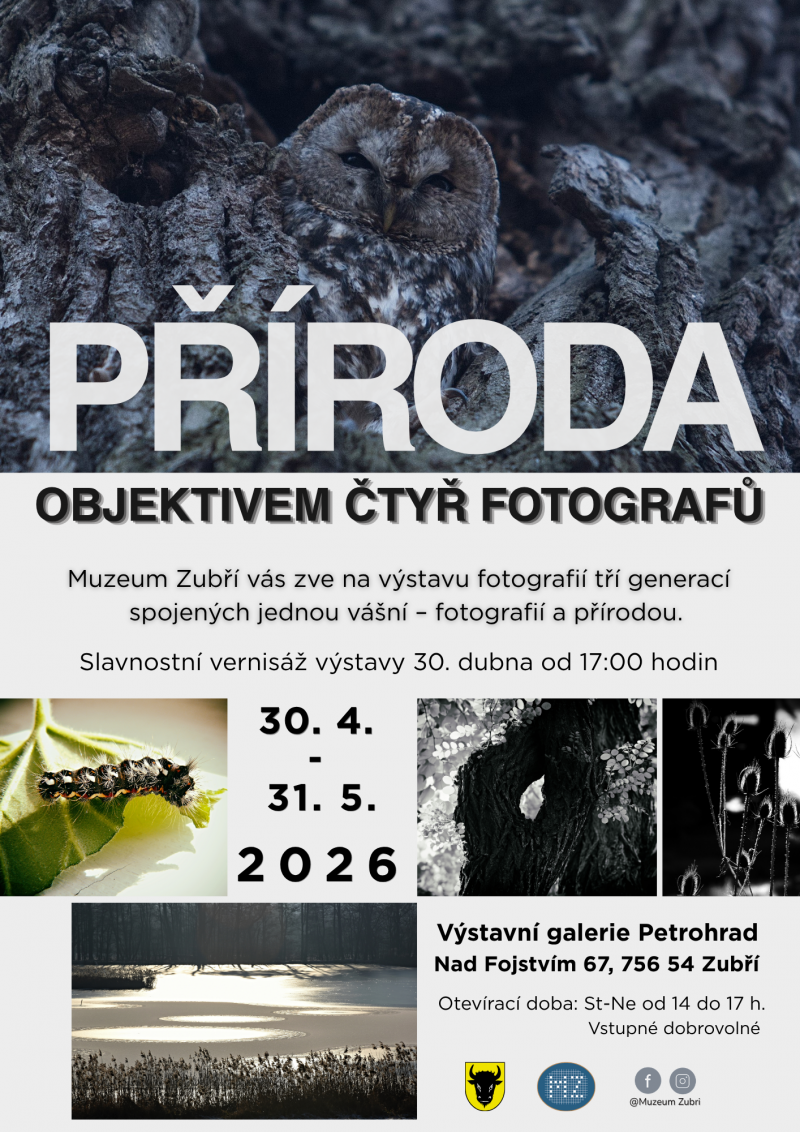 Muzeum Zubří srdečně zve do Výstavní galerie Petrohrad na fotografickou výstavu „Příroda objektivem čtyř fotografů“.